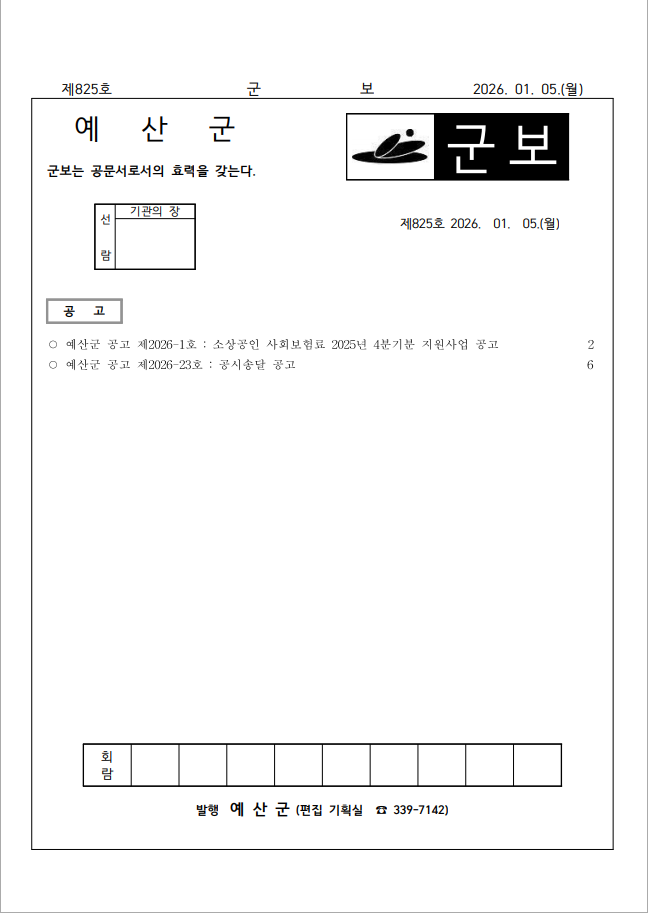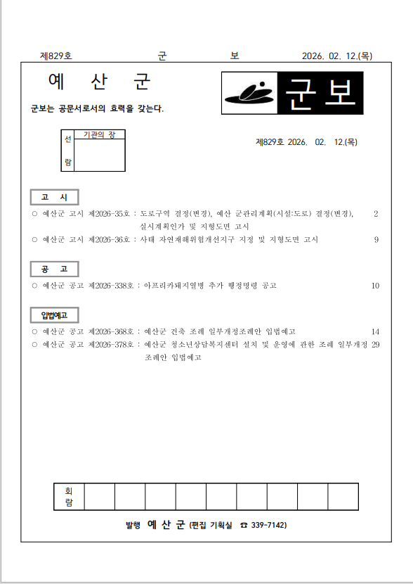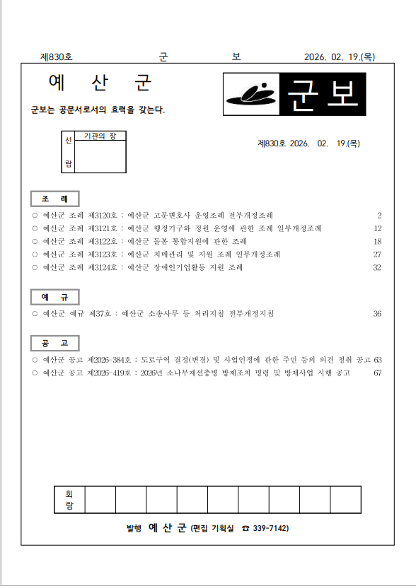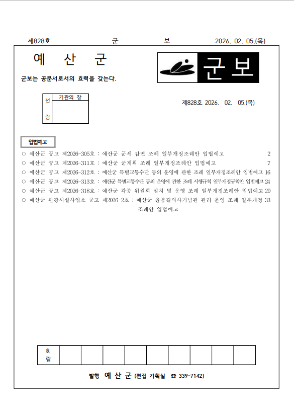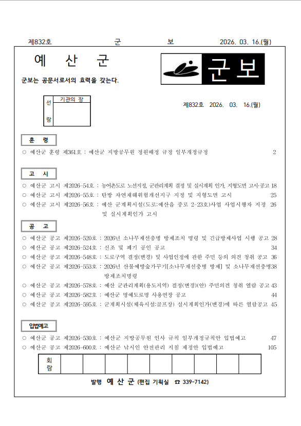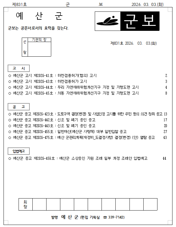 시각적인 즐거움과 볼거리를 전해드린다는 의미의 Visual Yesan News! 337회입니다.