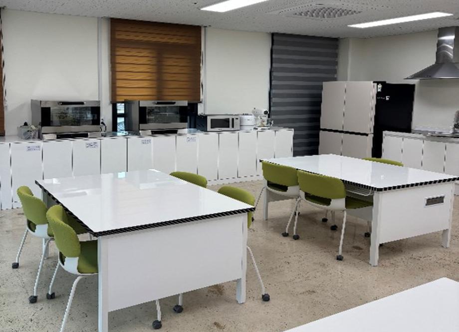 요리조리 온담은 오픈형 주방 공간으로 냉장고, 오븐, 인덕션, 반죽기, 전자레인지 등 다양한 조리 장비가 구비되어 있습니다. 요리 활동, 쿠킹 클래스, 소규모 모임 등 청년들의 일상과 배움을 함께 담아낼 수 있는 실용적인 공유 주방 공간입니다.