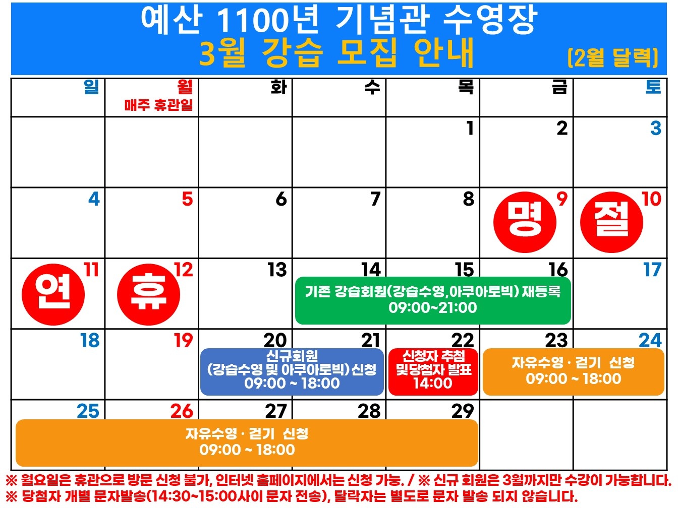 2024년 3월 수영장 회원모집 일정 안내