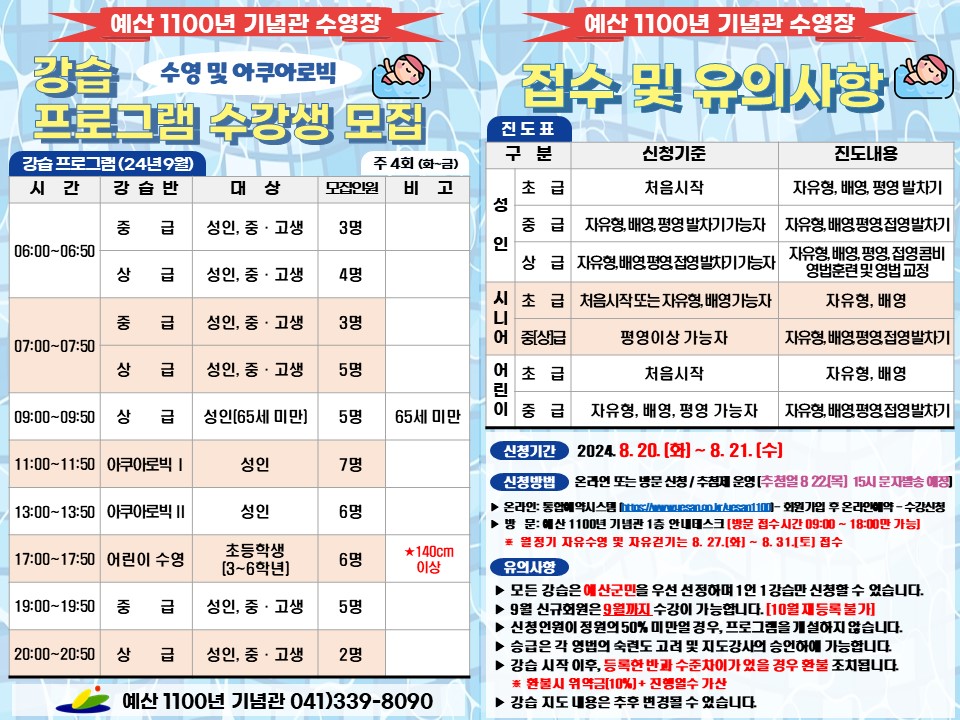 2024년 9월 수영장 강습프로그램 수강생을 다음과 같이 모집하오니,